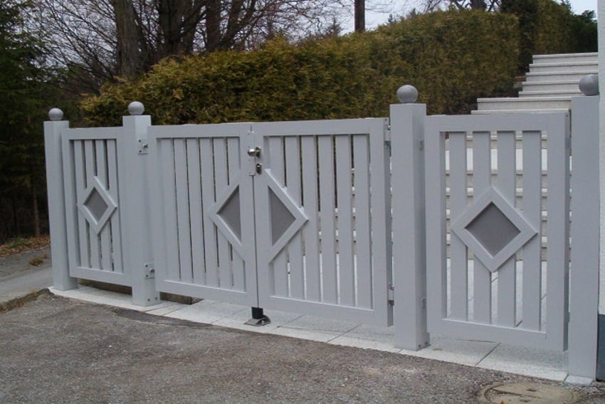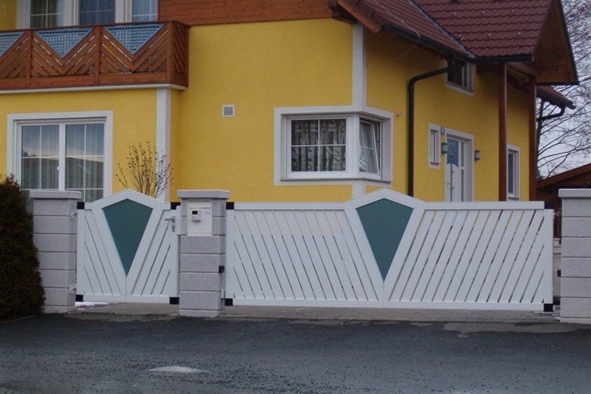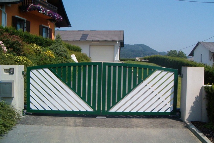 Torpfosten und Torrahmen werden gemäß statischen Erfordernissen ausgeführt. Die Torrahmenfüllung besteht aus eingeschweißten Doppelstabgittermatten oder Profilstahlrohren (30mm x 20mm), je nach Torbreite auch mit Friesstäben. Die einstellbaren Scharniere lassen sich stufenlos verstellen und der Öffnungswinkel ist zwischen 90 und 180 Grad wählbar.